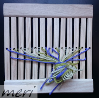 Na ten patyczek z dziurką (odpowiednik czółenka) nawija się wełnę (uczyliśmy się na akrylu) i tka. Jest to dość proste, tylko męczące dla kręgosłupa - używa się długich nici, które przywiązuje się np. do krzesła/stołu w pewnej odległości od siebie, a drugi koniec do swojego paska lub krzesła na którym się siedzi. Generalnie bardko przesuwamy raz w górę, raz w dół (tak, żeby nici które są w dziurkach krosna raz były wyżej, a raz niżej niż te pomiędzy deseczkami), za każdym razem śmigając czółenkiem pomiędzy nićmi. Tutaj filmik, który lepiej pokaże, niż ja opisuję ;)